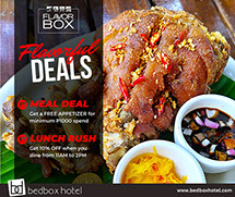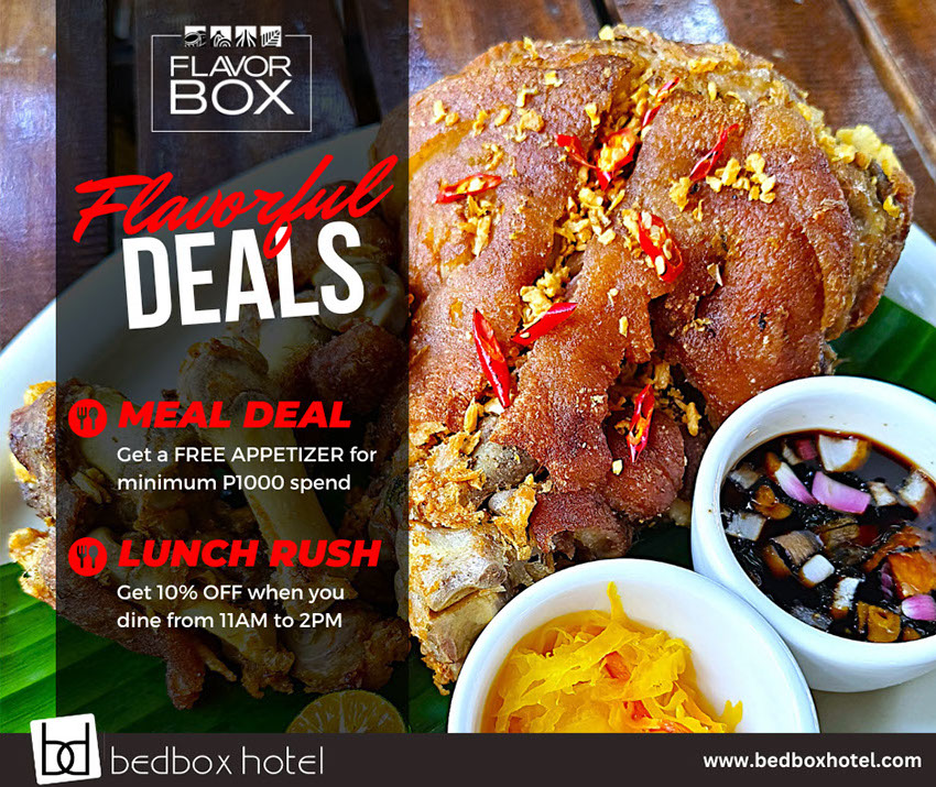 Indulge in the best of Filipino flavors at Flavor Box, where every dish is crafted with care and served to satisfy your cravings. Whether you're dining in for a cozy meal or enjoying room service in the comfort of your room, we bring you a delicious experience thatβs both affordable and memorable. Taste the comfort, savor the quality β only at Flavor Box.